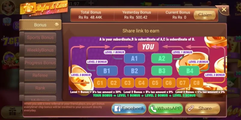 Daily login rewards, signup bonuses, referral income, and free spins are available for players. These benefits help players build their balance and play more games without extra spending.