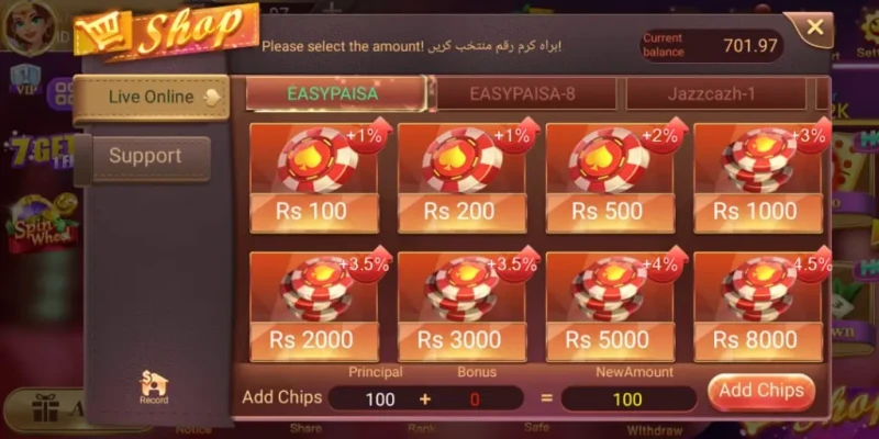 All payments are processed through safe methods like JazzCash and EasyPaisa. Withdrawals are instant and usually reflect within minutes, giving players peace of mind.