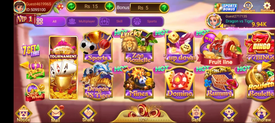 Other games like Rummy, Ludo, and Dragon Tiger follow their own classic rules but are equally fun and easy to learn.