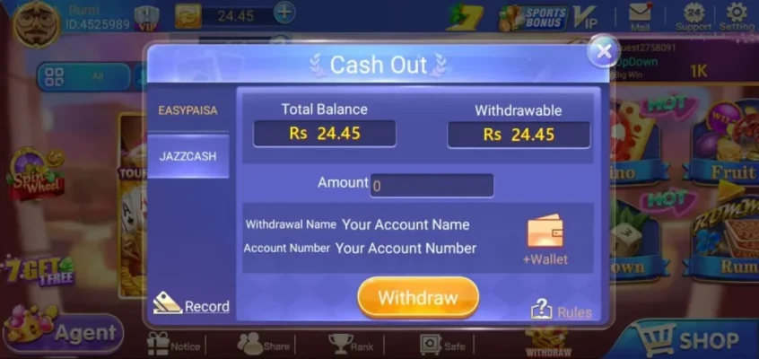 Safe transactions: Enjoy secure deposits and withdrawals using Easypaisa and JazzCash.