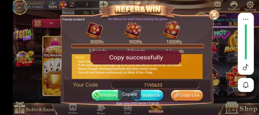 3 Patti Tiger is not just about entertainment. It also provides chances to earn real money. You can play simple games like Ludo, Mines, or Dragon vs Tiger and win rewards. The app also offers referral income when you invite friends.