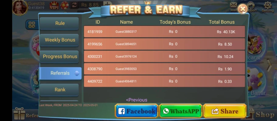 One of the easiest ways to earn money on Teen Patti Go is through referrals. Players can copy their referral link and share it with friends through WhatsApp, Facebook, Instagram, or Telegram. Every time someone joins using the link, the player earns up to 30% commission.